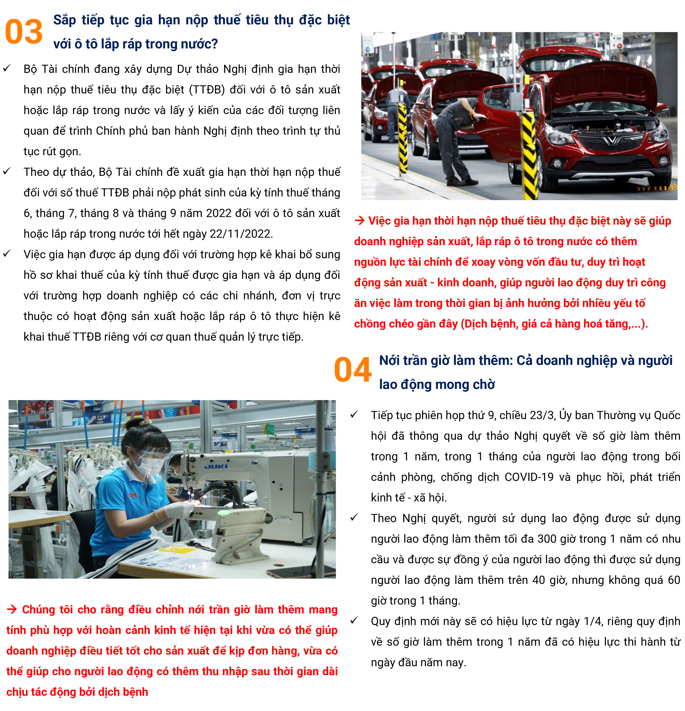 Việc gia hạn thời hạn nộp thuế tiêu thụ đặc biệt này sẽ giúp doanh nghiệp sản xuất, lắp ráp ô tô trong nước có thêm nguồn lực tài chính để xoay vòng vốn đầu tư, duy trì hoạt động sản xuất – kinh doanh, giúp người lao động duy trì công ăn việc làm trong thời gian bị ảnh hưởng bởi nhiều yếu tố chồng chéo gần đây (Dịch bệnh, giá cả hàng hoá tăng,…).