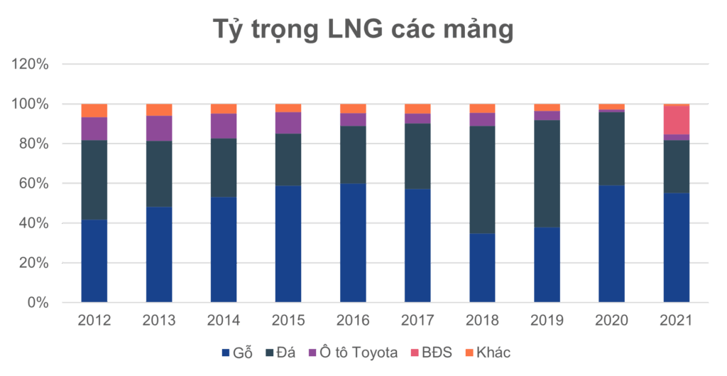 Hiện tại, mảng Gỗ chiếm tỷ trọng cao nhất trong cơ cấu LNG của Doanh nghiệp – tiềm năng tăng trưởng của PTB một phần lớn phụ thuộc vào mảng này.