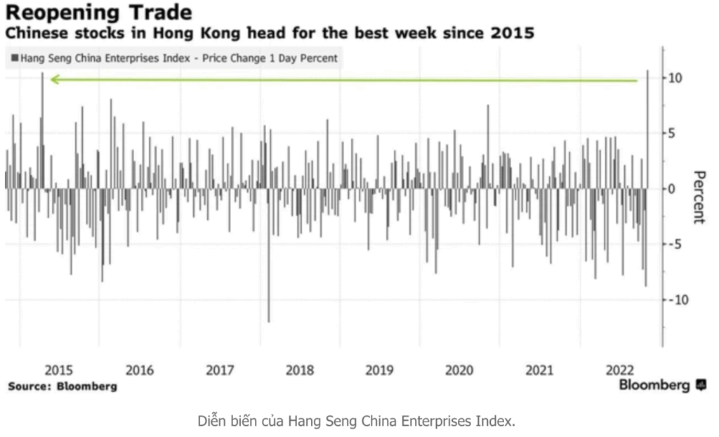 Tuần trước, TTCK Trung Quốc nhận được sự thúc đẩy lớn khi nhiều bài đăng chưa được xác minh trên các trang mạng xã hội nói về việc Bắc Kinh đang cân nhắc kế hoạch nới lỏng quy định phòng dịch. Bloomberg cũng đưa tin giới chức nước này đang thảo luận kế hoạch chấm dứt việc phạt các hãng bay có ca mắc Covid-19. Thủ tướng Đức Olaf Scholz cho biết Trung Quốc sẽ cho phép người nước ngoài sinh sống tại đây tiêm vắc-xn của BioNTech, bước đi hướng đến việc dần mở cửa trở lại.