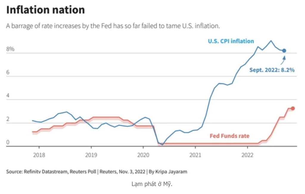 Vào thứ Năm tới (10/11), các con số về lạm phát Mỹ sẽ được công bố, là những dữ liệu sẽ mang tính chất bước ngoặt quan trọng đối với thị trường trong năm nay, khi giá tiêu dùng tăng lên mức đỉnh cao nhất trong vòng hàng thập kỷ. Các nhà đầu tư một lần nữa sẽ tìm kiếm các dấu hiệu cho thấy áp lực giá đang chậm lại sau một loạt các đợt tăng lãi suất. Tuy nhiên, ngân hàng trung ương hàng đầu thế giới vừa cho biết mức lãi suất cuối cùng có thể sẽ cao hơn các ước tính trước đây, để kiềm chế lạm phát; nhấn mạnh mối đe dọa mà giá cả tăng cao gây ra cho nền kinh tế. Một kết quả tốt hơn mong đợi có thể sẽ gây áp lực giảm giá cổ phiếu và trái phiếu, có khả năng làm gia tăng kỳ vọng rằng các nhà hoạch định chính sách sẽ cần phải thắt chặt chính sách tiền tệ mạnh nữa. Một cuộc thăm dò của Reuters cho thấy các nhà phân tích dự đoán lạm phát tháng 10 sẽ tăng 0,7% so với tháng trước.