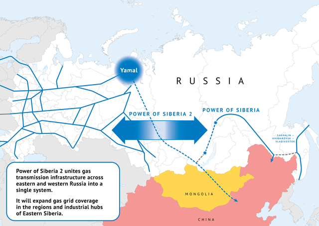 Việc Mỹ và các đồng minh phương Tây đã áp đặt nhiều biện pháp trừng phạt nhằm vào nền kinh tế Nga đẩy Nga tăng cường bơm khí đốt sang Trung Quốc. Điều này có thể giúp thúc đẩy việc sử dụng đồng nhân dân tệ trên toàn cầu cũng như giải quyết vấn đề nguồn cung dầu khí của Nga