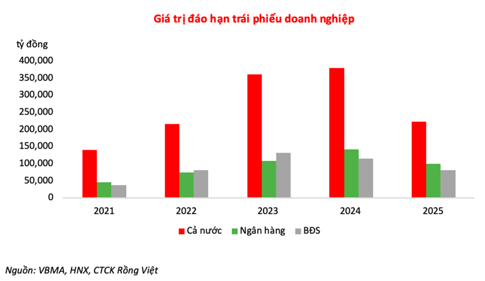 Việc mua lại trước hạn đã giảm được một phần quy mô đáo hạn trái phiếu doanh nghiệp, ước tính còn khoảng 350.000 tỷ đồng trong cả năm 2023, tương đương gần bằng 1/4 dư nợ tăng thêm của hệ thống ngân hàng năm 2022 với giả định tăng trưởng tín dụng năm 2022 là 14%. Hơn nữa, trong số trái phiếu đáo hạn này có khoảng 30% giá trị từ nhóm ngành ngân hàng. Do đó, khả năng cao vẫn có thể tái phát hành, song tỷ lệ hấp thụ sẽ bị hạn chế trong bối cảnh lãi suất cao và thanh khoản yếu đang diễn ra trong hệ thống.