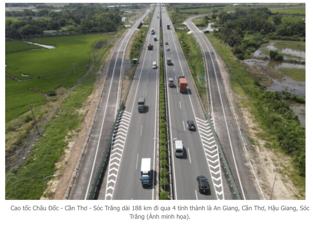 Dự án cao tốc Châu Đốc – Cần Thơ – Sóc Trăng đi qua địa bàn tỉnh Sóc Trăng thuộc dự án thành phần 4, tổng chiều dài khoảng 58km, quy mô mặt cắt ngang 17m, 4 làn xe (giai đoạn 1). Dự kiến, đoạn tuyến thành phần 4 của cao tốc sẽ đưa vào khai thác vào năm 2027. Tổng mức đầu tư dự án thành phần 4 trên địa bàn tỉnh Sóc Trăng khoảng 11.100 tỷ đồng từ nguồn vốn ngân sách Trung ương và địa phương. Trong đó, chi phí bồi thường, hỗ trợ, tái định cư là gần 2.000 tỷ đồng; chi phí xây dựng và thiết bị hơn 7.200 tỷ đồng; chi phí quản lý dự án, tư vấn và chi phí khác là 650 tỷ đồng; chi phí dự phòng khoảng gần 1.300 tỷ đồng.