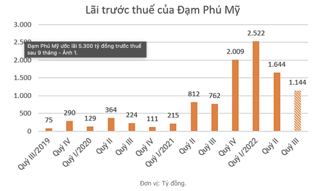 Nửa đầu năm, đơn vị này đã ghi nhận doanh thu 10.935 tỷ đồng, lãi trước thuế 4.156 tỷ đồng. Như vậy ước tính quý III doanh thu công ty là 4.065 tỷ đồng, lợi nhuận trước thuế 1.144 tỷ đồng. Mức lợi nhuận này tăng so với cùng kỳ nhưng thấp nhất trong 4 quý gần đây. Tuy nhiên, quý III thường có lợi nhuận thấp hơn các quý còn lại do yếu tố mùa vụ.