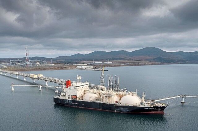 Một tàu chở khí tự nhiên hóa lỏng (LNG) từ dự án Sakhalin-2 tại cảng Prigorodnoye ở Nga. Ảnh: AP