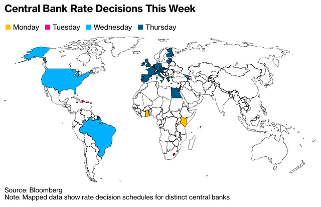Quyết định điều chỉnh lãi suất của các NHTW trên thế giới sẽ được đưa ra trong tuần này.