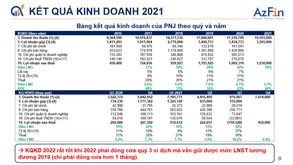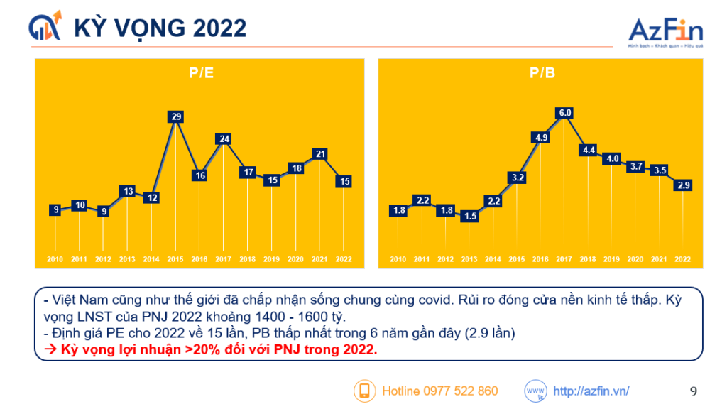 🐢 Kết luận 1: AzFin Việt Nam dự đoán LNST PNJ năm 2022 khoảng > 1400 tỷ.