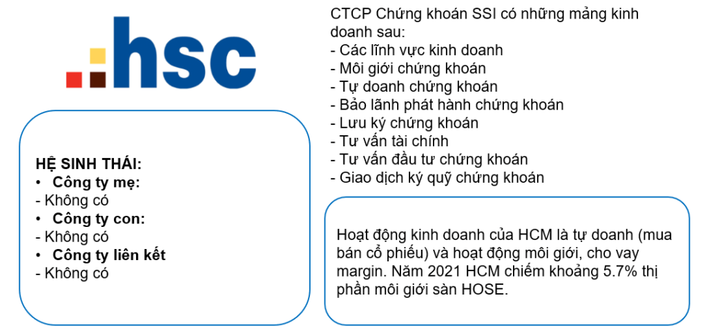 Là một trong những công ty chứng khoán đầu tiên được thành lập và hoạt động tại Việt Nam, CTCP Chứng khoán Thành phố Hồ Chí Minh ( HSC) đã đạt được những vị thế nhất định trong ngành chứng khoán – tài chính sau hơn 15 năm hoạt động và phát triển. Về quy mô hoạt động, HSC liên tục là một trong những công ty có vốn điều lệ và tổng tài sản lớn nhất trên thị trường từ lúc hình thành cho đến nay. Đến tháng 9 năm 2018, HSC có 619 nhân viên, 1 chi nhánh và 8 Phòng Giao dịch ở Thành phố Hồ Chí Minh và Hà Nội, với 4 mảng hoạt động chính là môi giới chứng khoán, nghiên cứu, tài chính doanh nghiệp, và tự doanh. HCM (2021) chiếm khoảng 5.7% thị phần môi giới sàn HOSE.