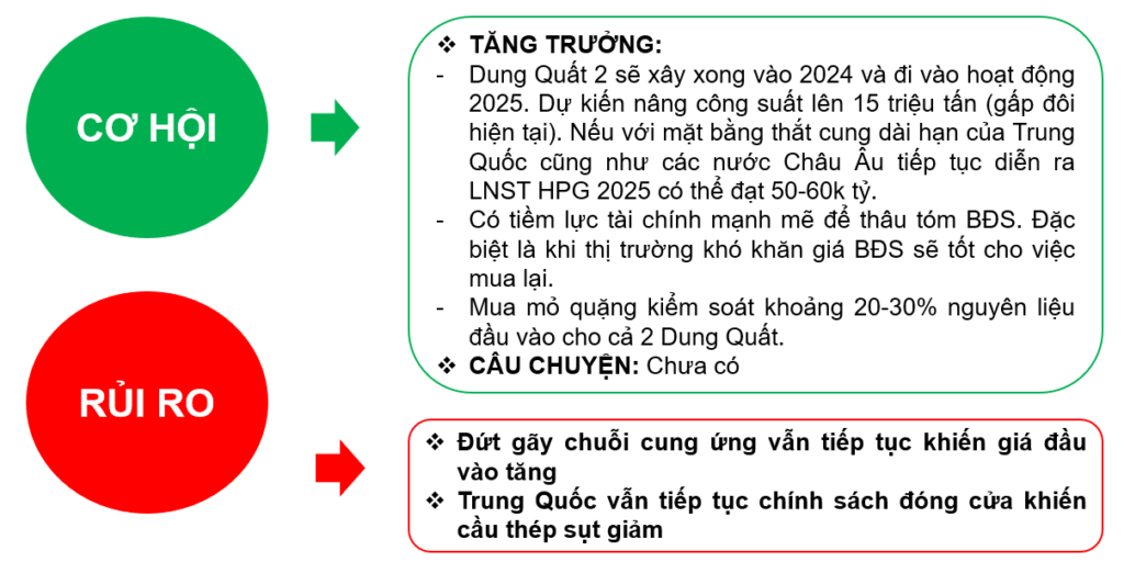– Câu chuyện về vĩ mô thuận lợi cho ngành thép Việt Nam là sự chuyển dịch sản xuất xanh của các nước phát triển và đặc biệt là Trung Quốc cắt giảm sản lượng thép trong dài hạn làm sụt cung mạnh khiến giá thép có thể sẽ ở một mặt bằng cao.