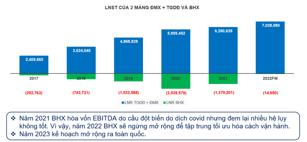– Dung lượng thị trường mảng BHX gấp 7 – 10 lần (70 – 100 tỷ đô) tổng 2 mảng điện thoại + điện máy.