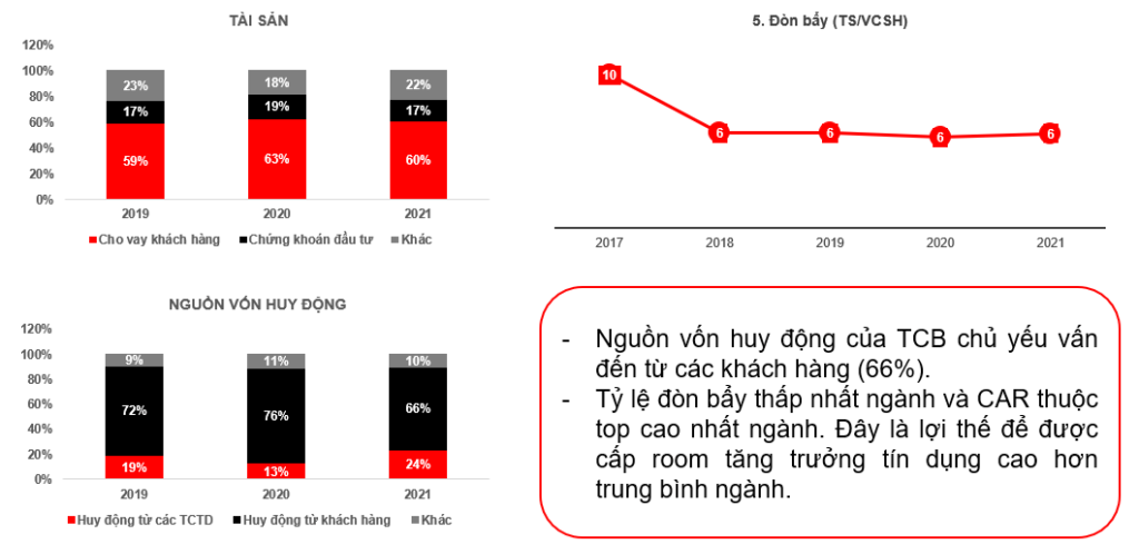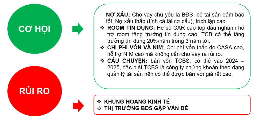 Chiến lược phát triển TCB: Phát triển hệ sinh thái quản lý gia sản tập trung vào thị trường trái phiếu và bất động sản (BĐS), chứng khoán vì đây là xu hướng tất yếu của các nước đang phát triển. TCB có thể tăng trưởng LNST 20%/ năm trong giai đoạn 3- 5 năm tới.
