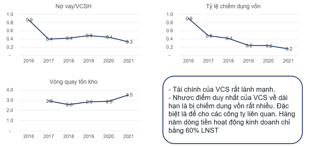 Cơ cấu cổ đông: Ông Hồ Xuân Năng và vợ nắm toàn bộ công ty Phượng Hoàng Xanh A&A. Bên cạnh đấy công ty này cũng nắm 84% VCS, ông Năng còn nắm thêm 3.74% cùng vợ và em gái. Có thể nói đây là công ty nằm hoàn toàn trong tay ông Năng và gia đình. Đây cũng là lợi ở mặt đồng nhất lợi ích nhưng cũng là nhược điểm ở mặt cân bằng cổ đông.