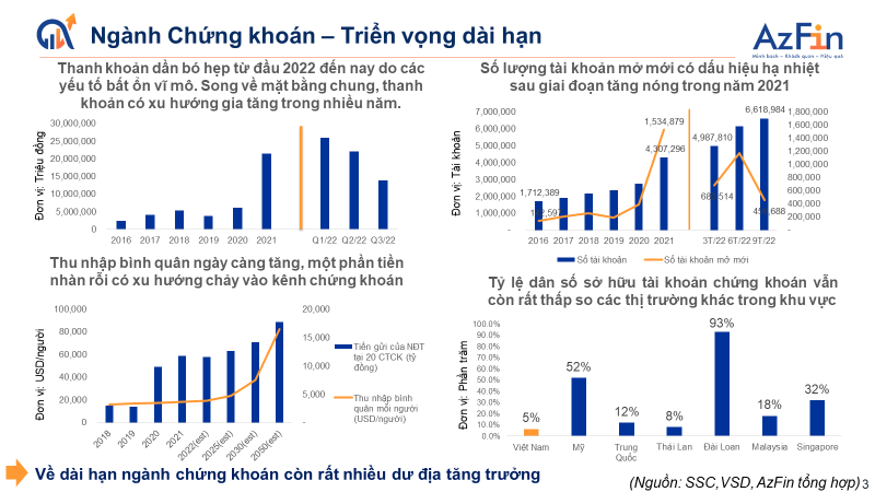=>>> Như vậy ngành chứng khoán còn khá nhiều dư địa tăng trưởng khi tỷ lệ dân số biết đến chứng khoán còn khá thấp.